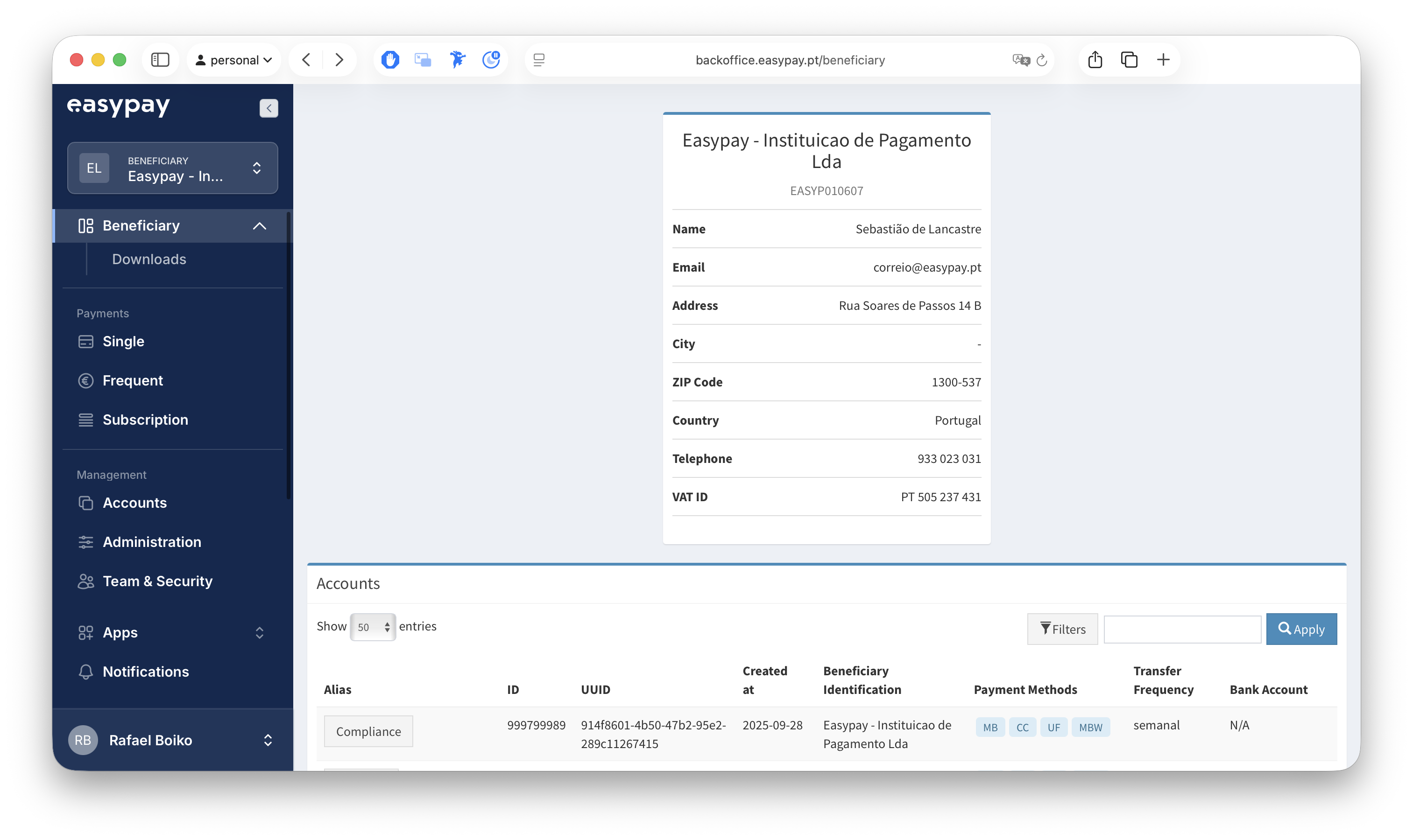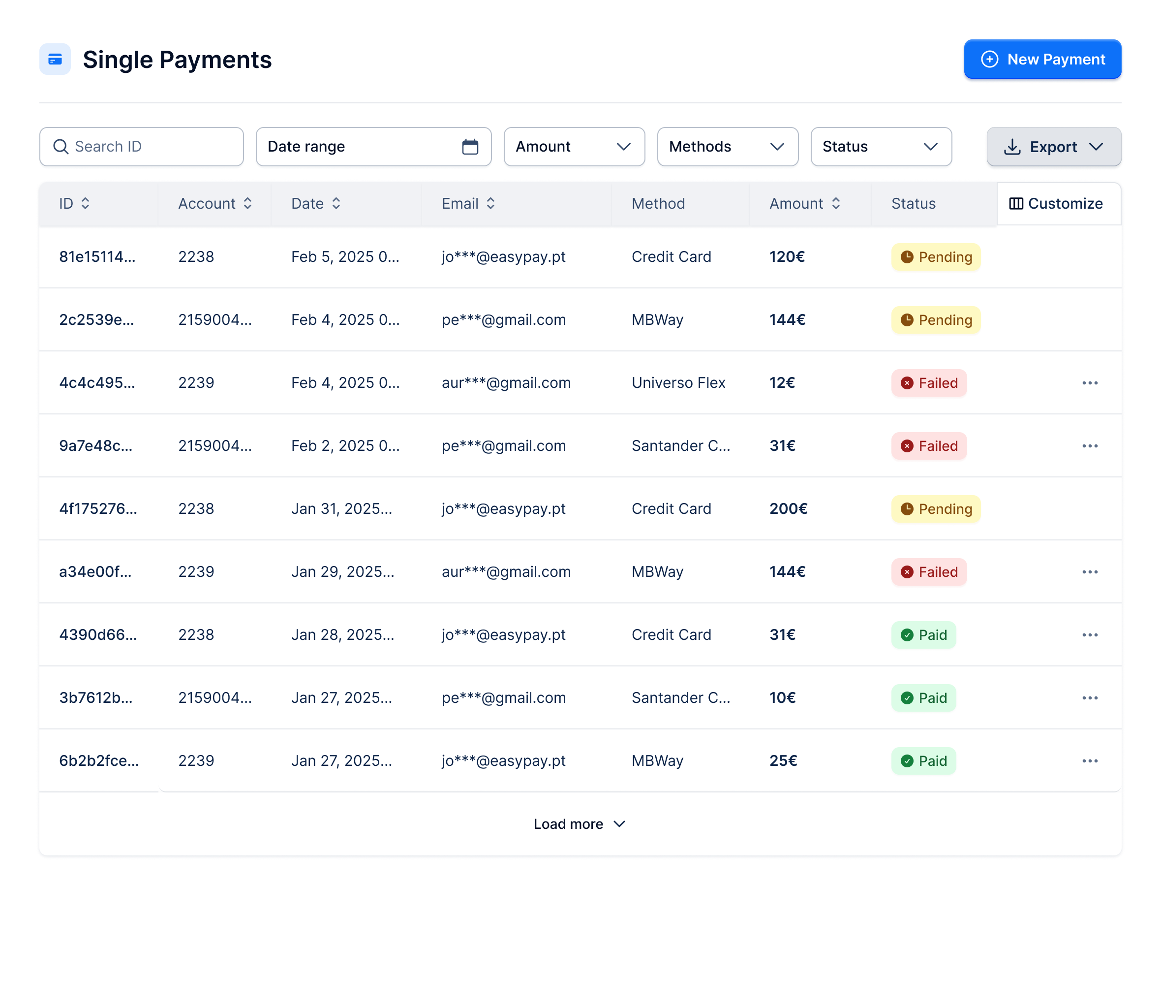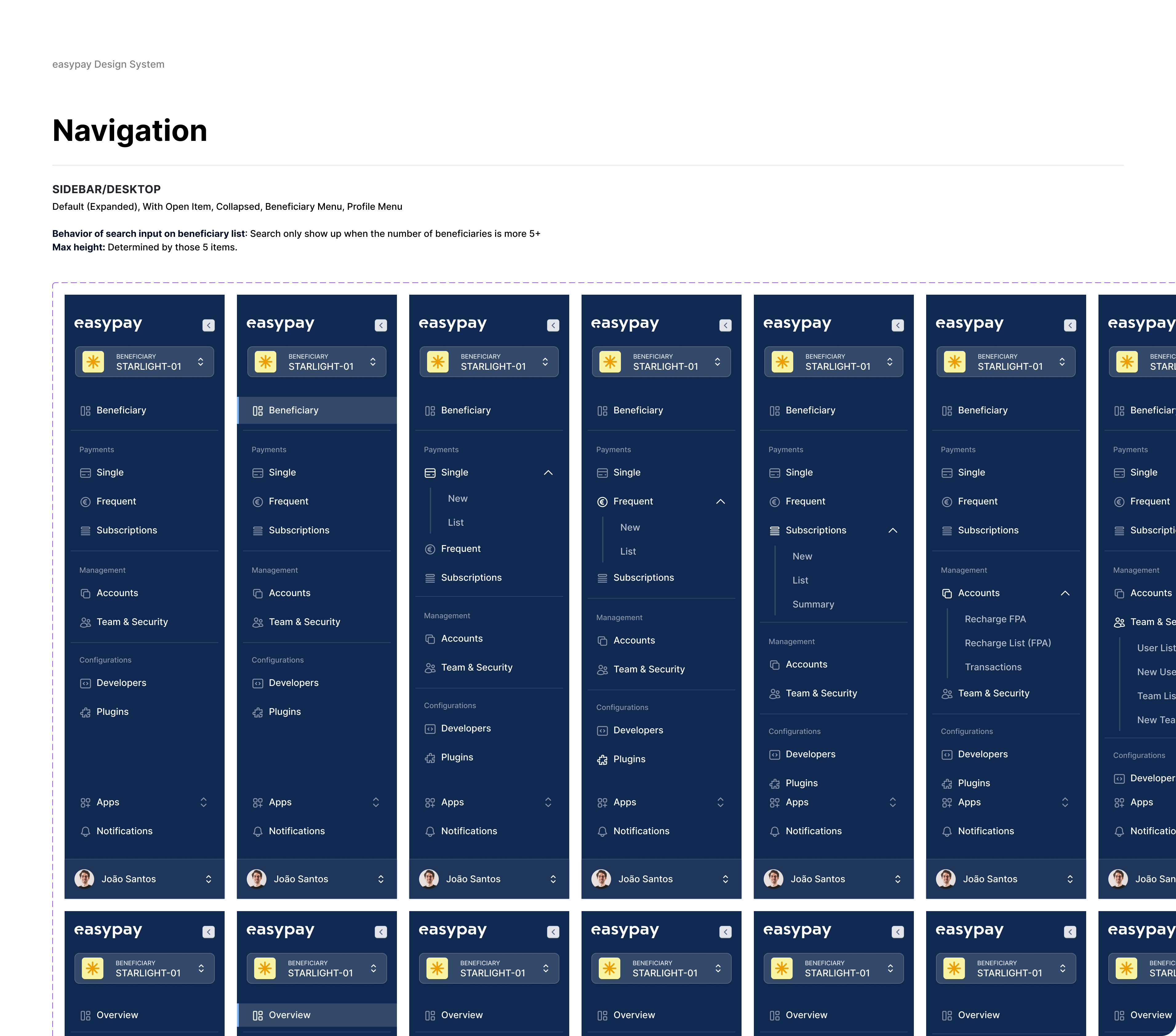 At easypay, I worked on the redesign of the backoffice, focusing on building interfaces fully supported by our design system. This process involved close collaboration with the development team, ensuring consistency, scalability, and technical feasibility at every stage.